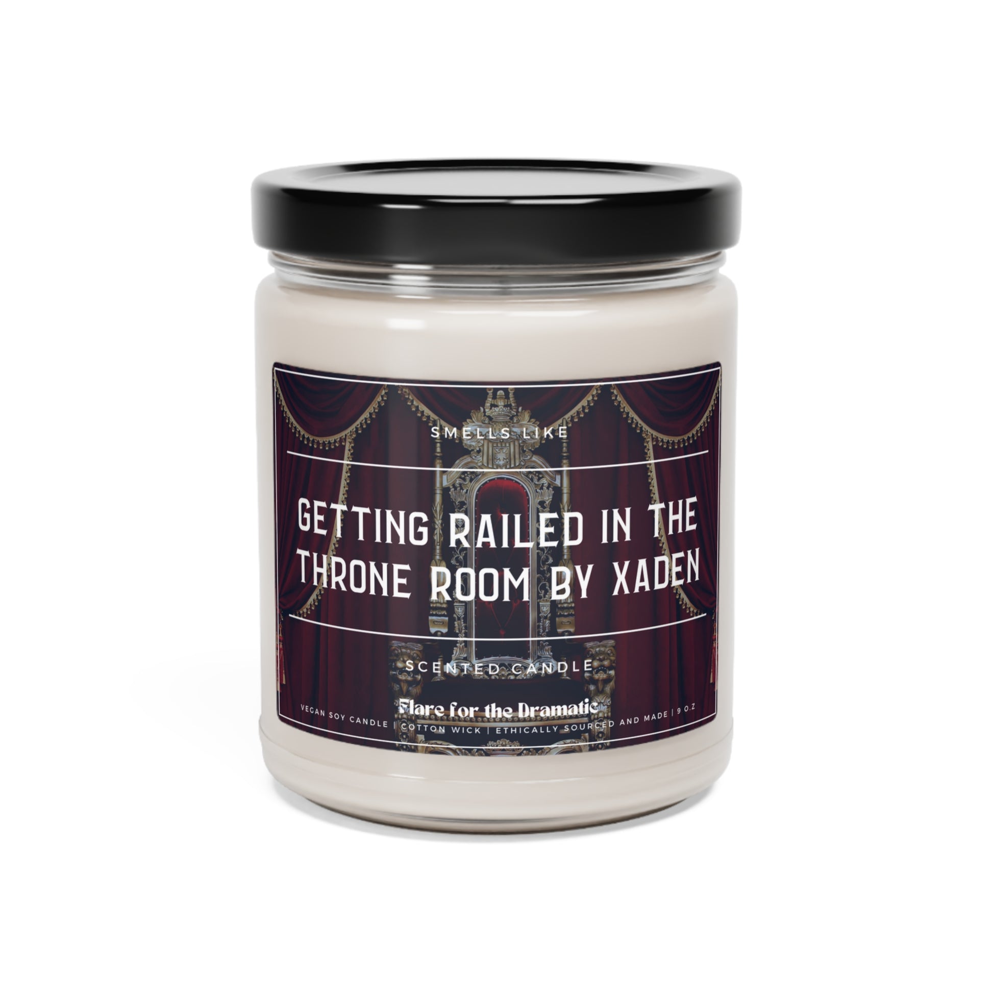Mooning over hot leather-clad guys named Xaden? Us too. This candle features a throne room fit for a queen. Smells like "Getting Railed in the Throne Room by Xaden" and is perfect merch for romantasy readers, fanfic ship romance, or fictional men fan in your life. Funny gag gift or sexy scent to read / write by? That's your call.
