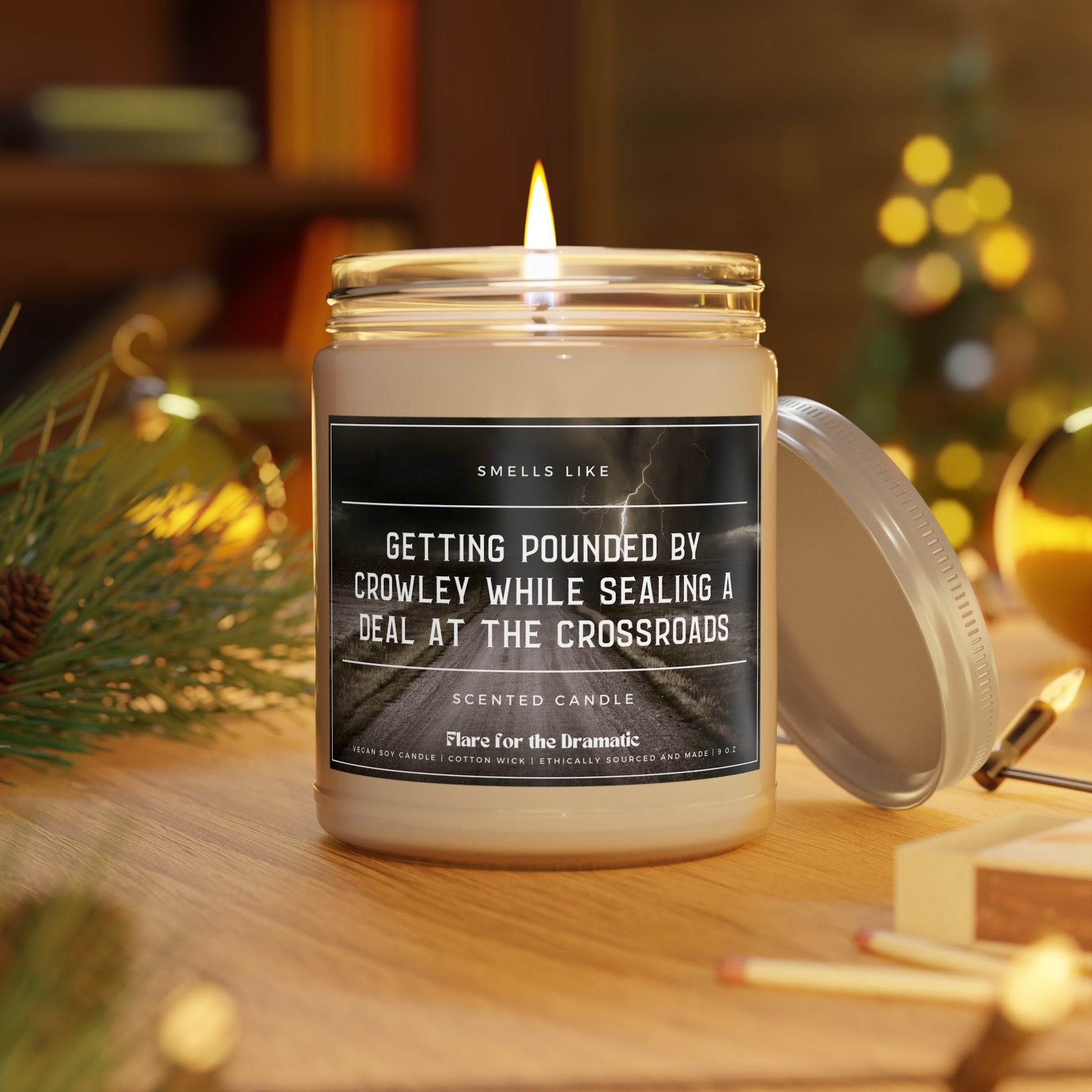 Swooning over Crowley? Us too. This candle features a dark and moody Supernatural design. Smells like "Getting Pounded by Crowley while Sealing a Deal at the Crossroads" and is perfect Supernatural fan merch for the fanfic or show stan in your life. Funny gag gift or sexy scent to read / write fanfiction by? That's your call. Saving People, Hunting Things. The Family Business. We'll add Being Sexy as Hell to that list.
