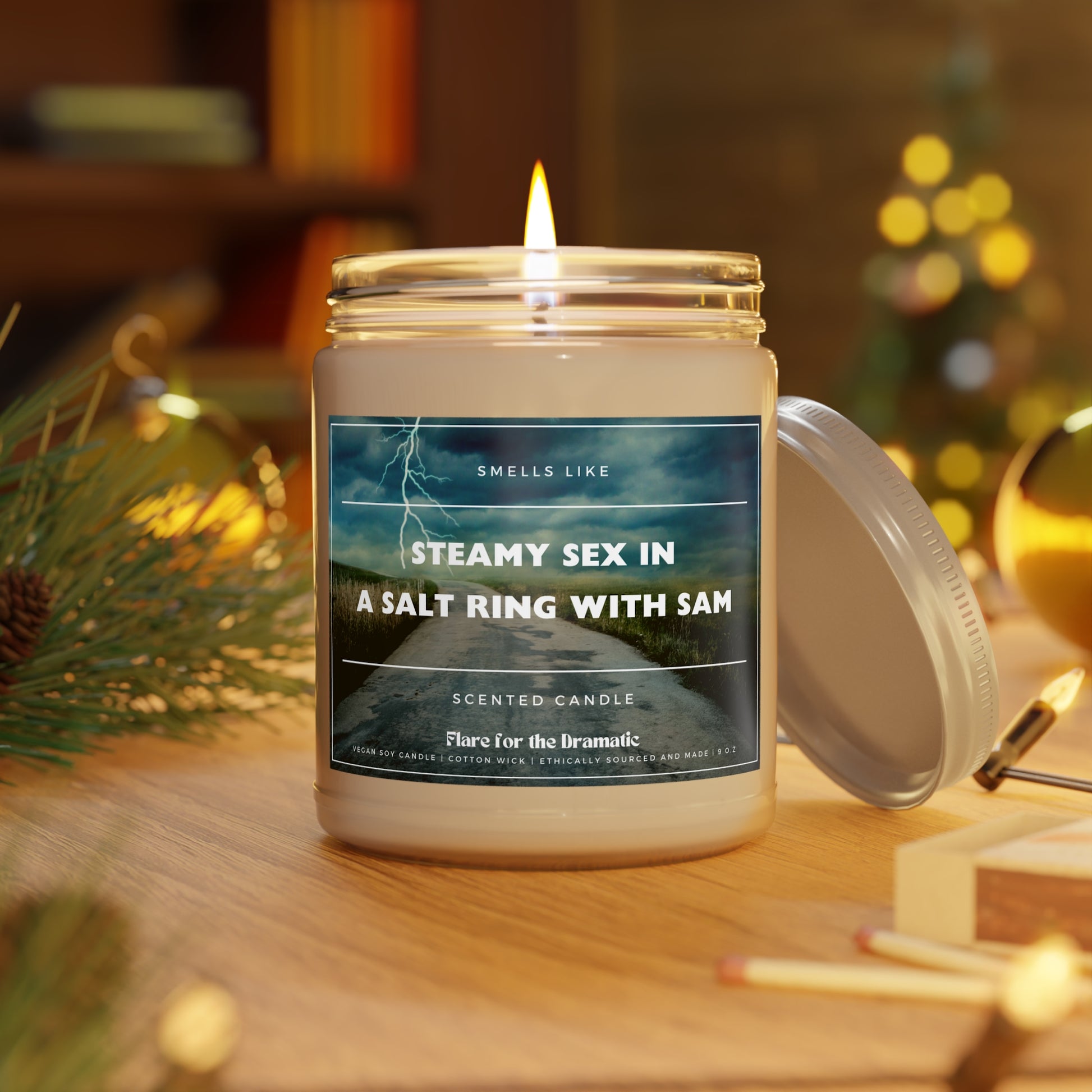 Are you sweet on Sam? Us too. This candle features a dark and moody design with supernatural lightning striking a winding road during a hunt. Smells like "Steamy Sex in a Salt Ring with Sam" and is perfect fan merch for the fanfic or show stan in your life. Funny gag gift or sexy scent to read / write fanfiction by? That's your call. Saving People, Hunting Things. The Family Business. We'll add Being Sexy as Hell to that list.